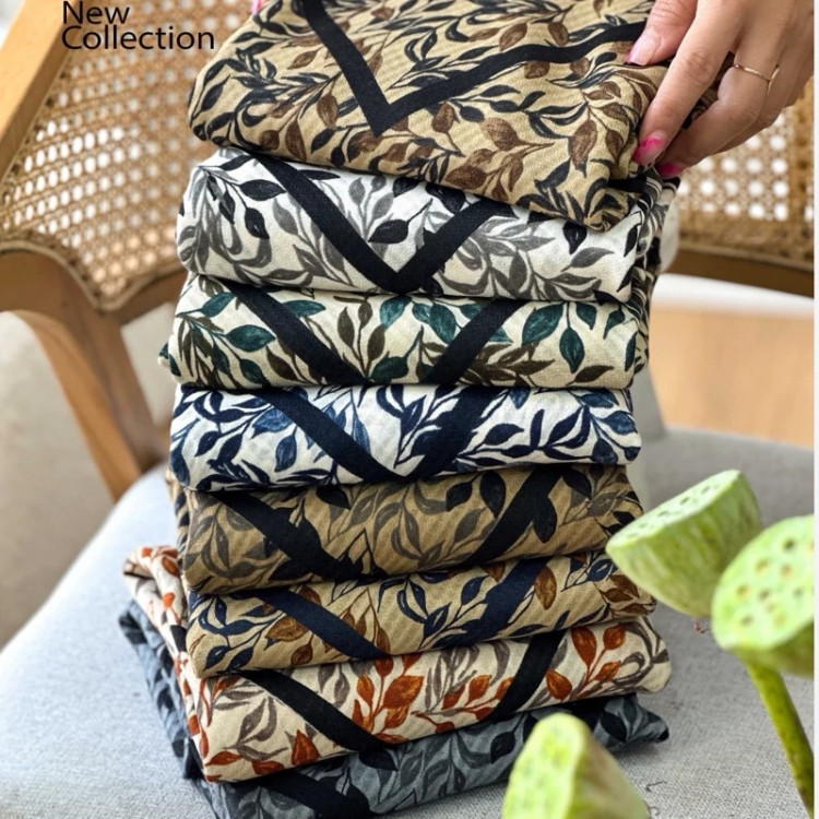 روسری نخ طرح برگ گل ریز قواره 140