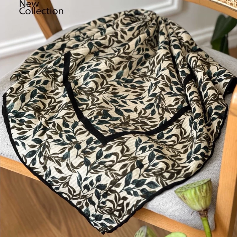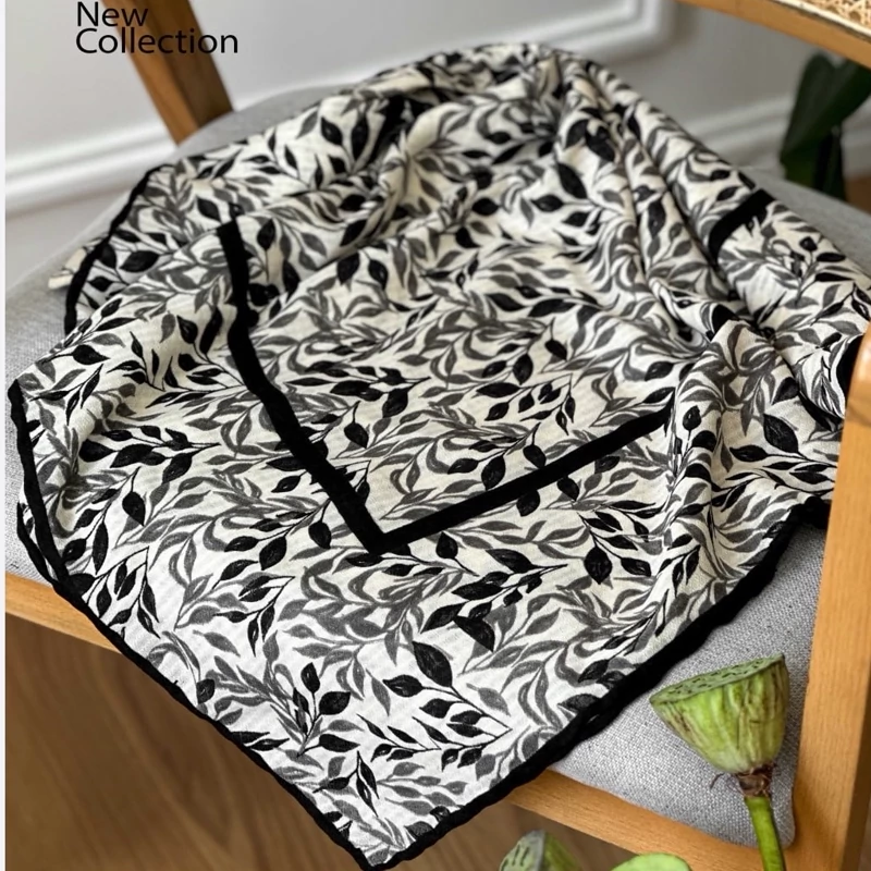 روسری نخ طرح برگ گل ریز قواره 140