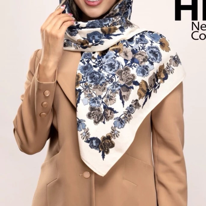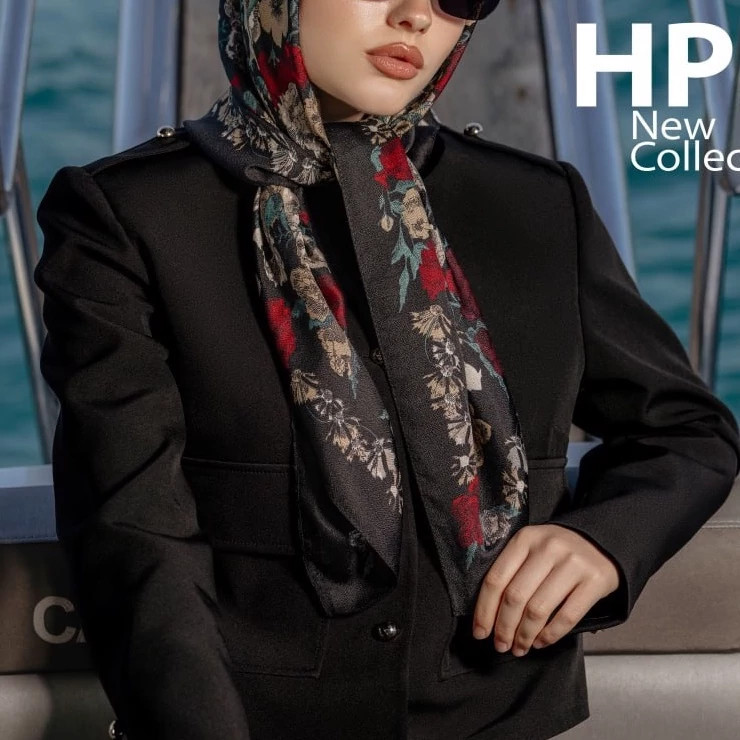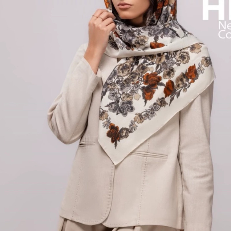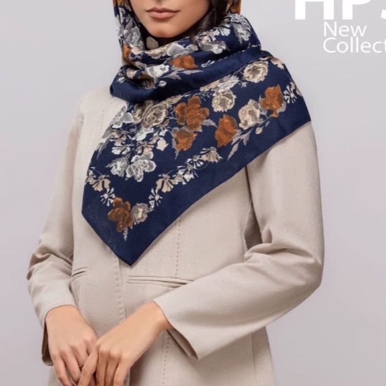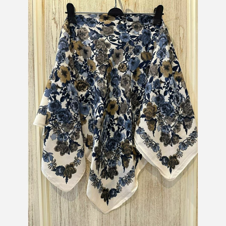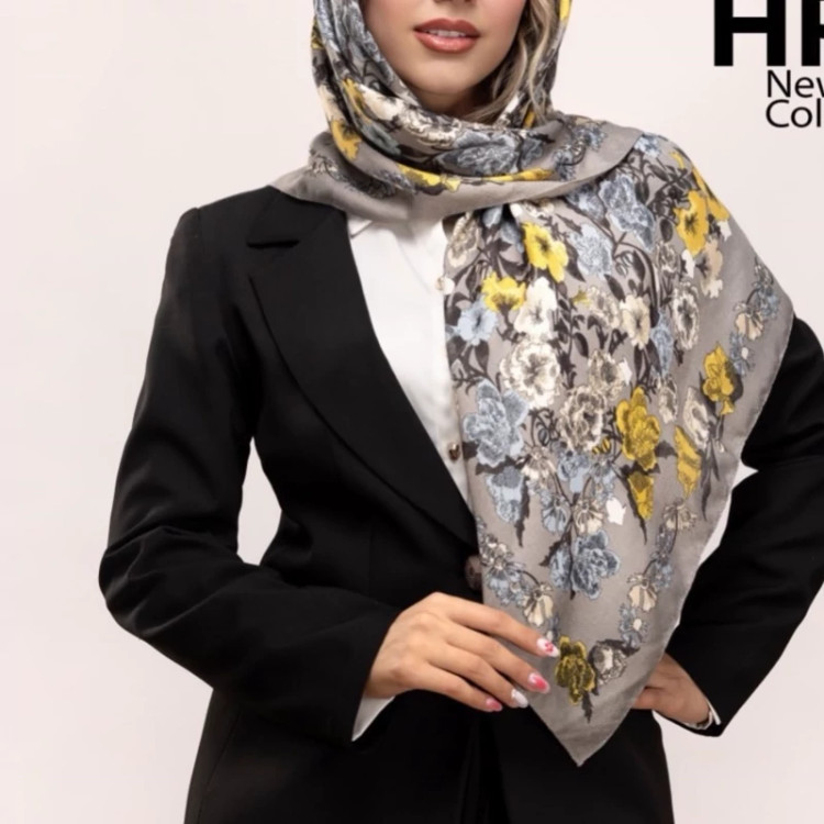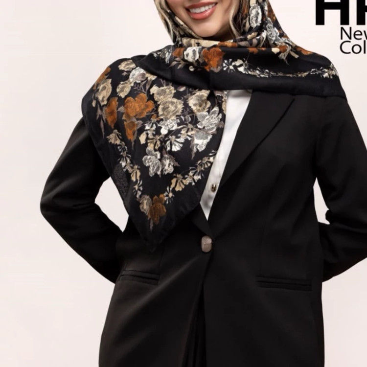 روسری نخی سیا اسکارف قواره 100 گلدار شیک