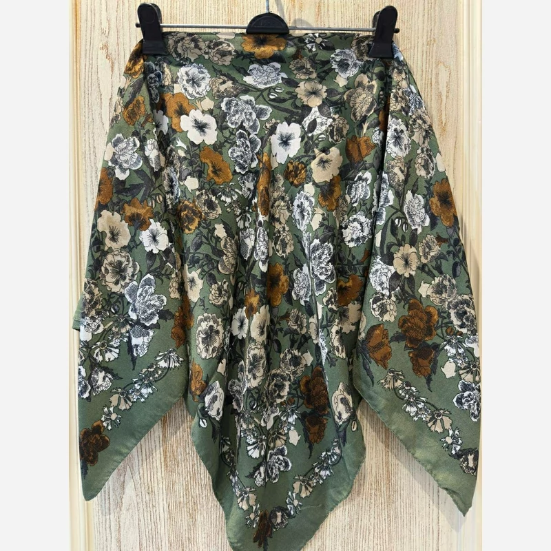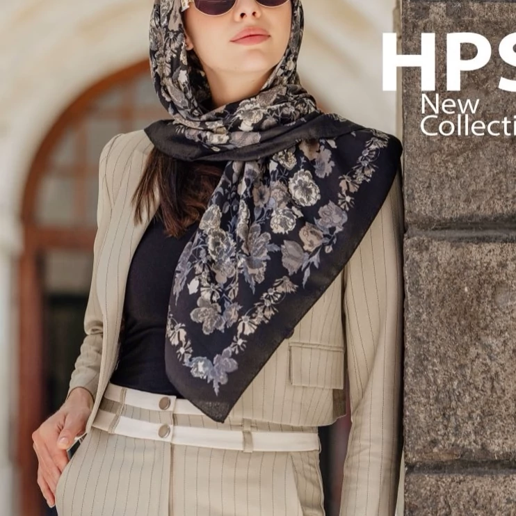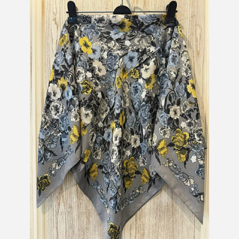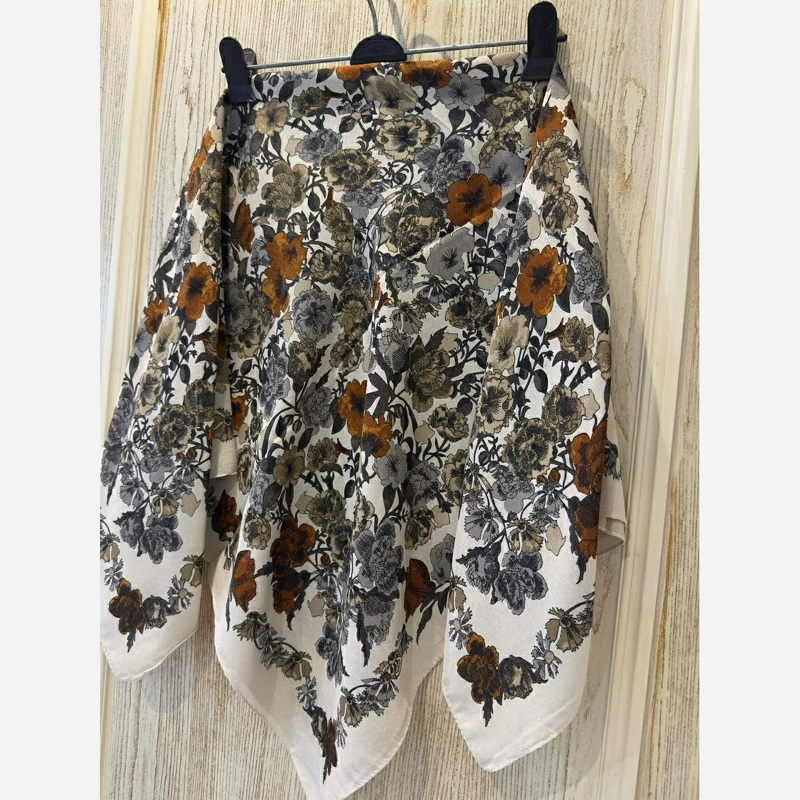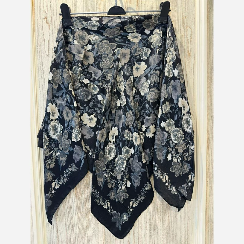 روسری نخی سیا اسکارف قواره 100 گلدار شیک