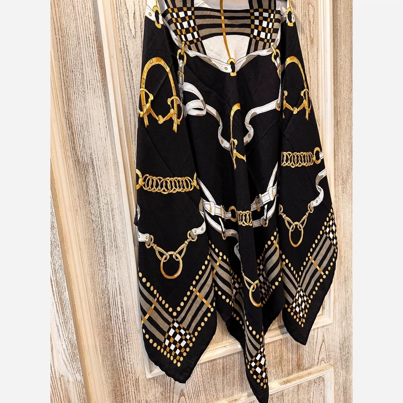 روسری ابریشم ژاکارد مشکی دور طلایی