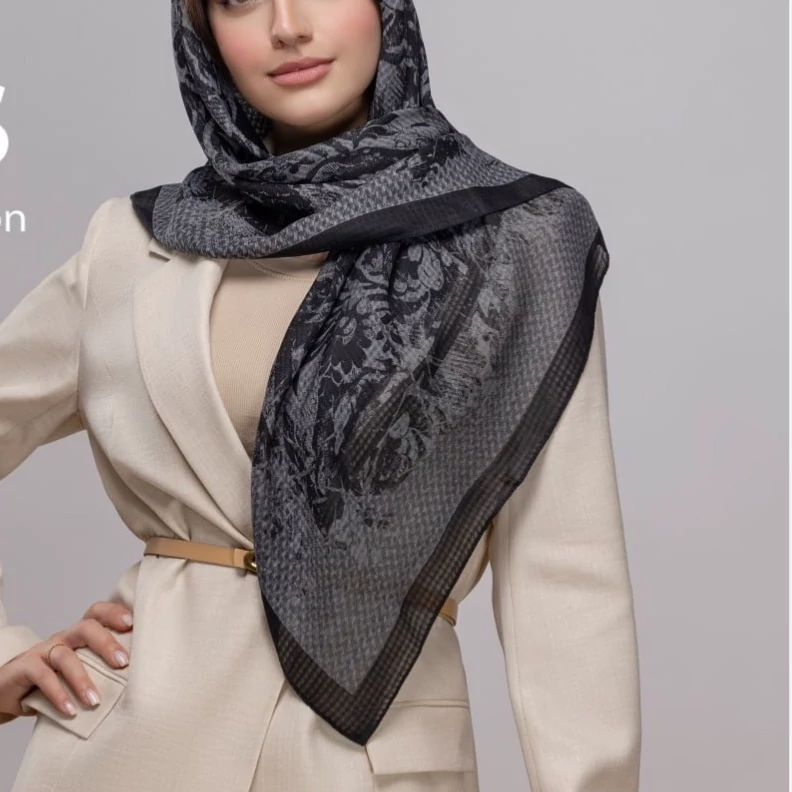 روسری حریر نخ برند hps قواره 100 کد 8794